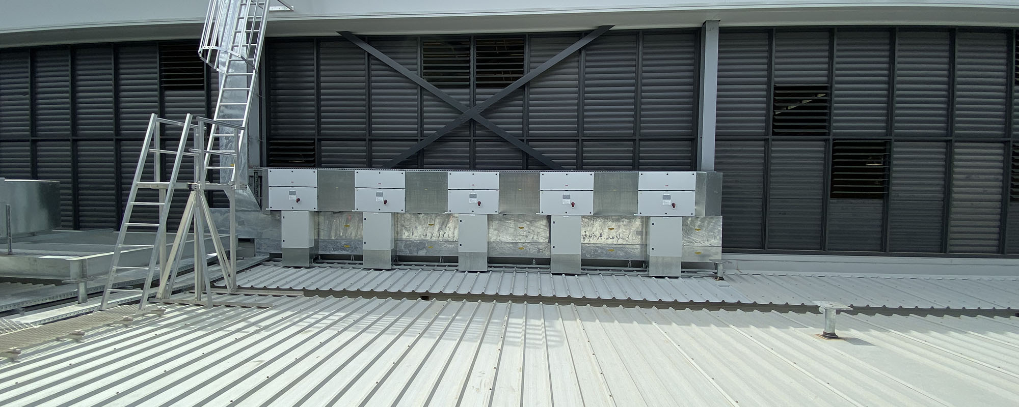 Utilizing the vast amount of roof space available. The system was specially designed to use close to 100% of all energy produced. The installation of 1240 solar panels was completed in several stages to ensure the safety of our installers, as well as the university staff and students.